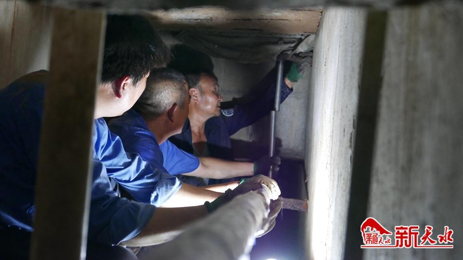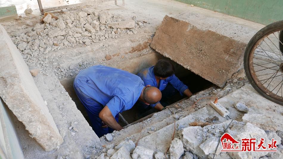 在通往星火幼兒園的樓道口,物業(yè)管理公司靳全生、趙勇、高海偉、宋第安等幾位師傅,撬開(kāi)密封暖氣管道的石板,接上照明燈,鉆進(jìn)高度和寬度都不到1米的管道井,更換年久失修的暖氣管道,為冬季取暖做準(zhǔn)備。