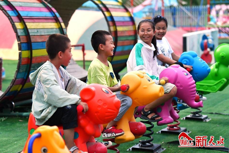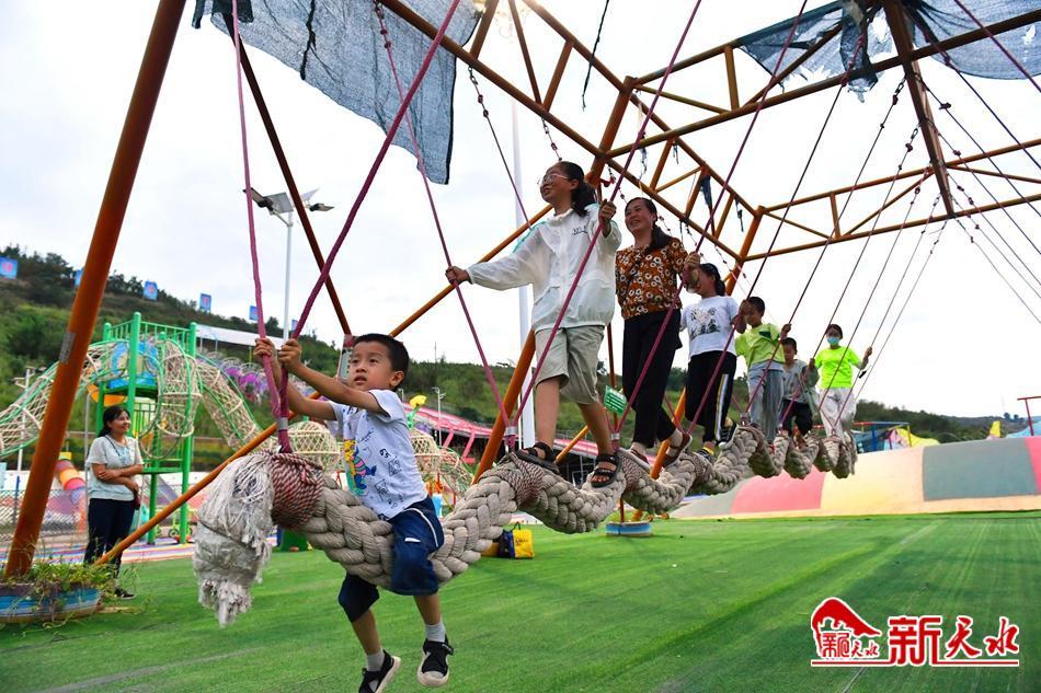 8月22日,幾個(gè)孩子在清水縣永清鎮(zhèn)蘇屲村的七彩親子樂(lè)園里盡情玩耍,享受快樂(lè)的假期。