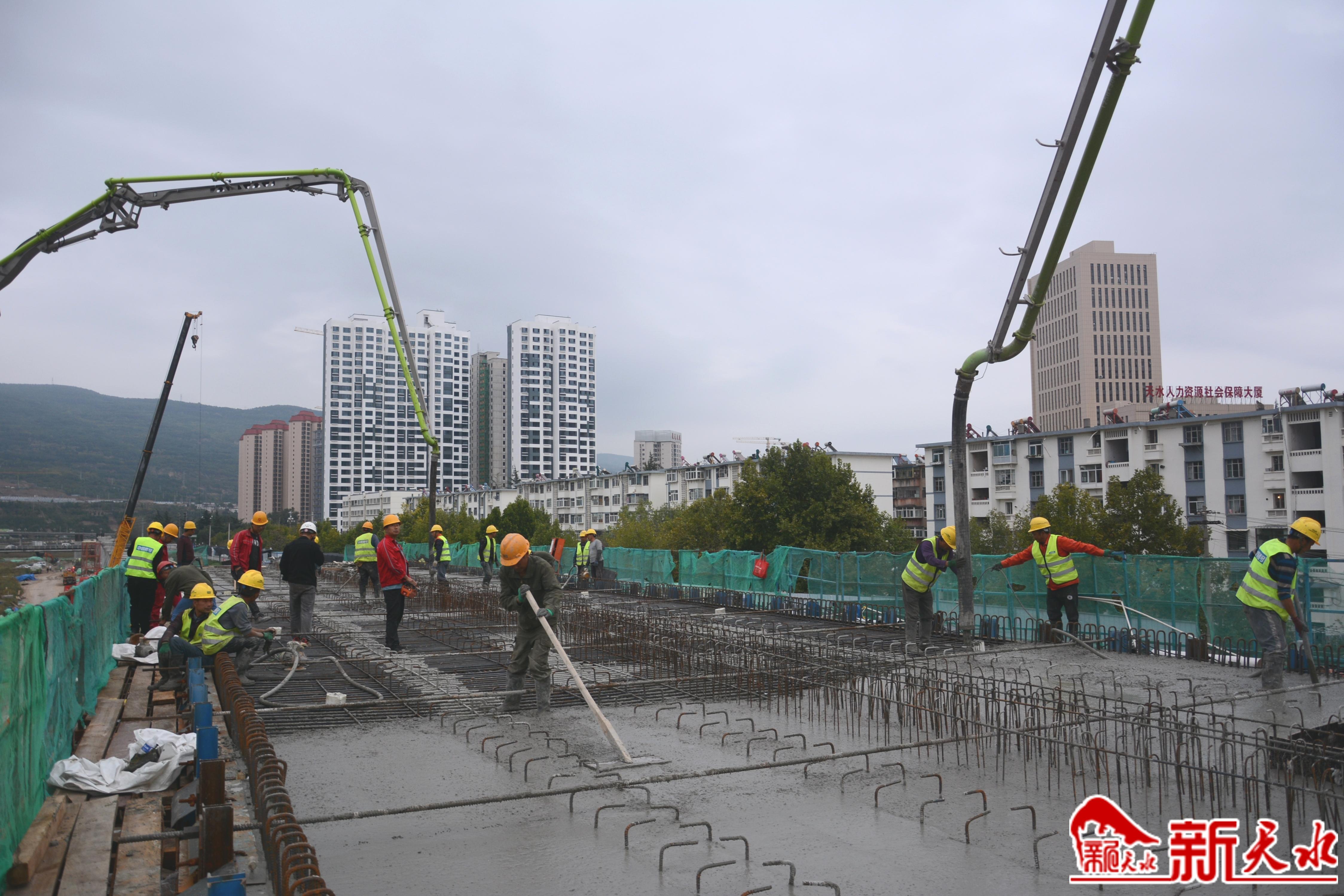 天秀橋旁的三陽川隧道及引線工程為年底開通試運行正在“沖刺”,沿著藉河而上,在五里鋪大橋、迎 賓橋以及紅橋附近,天水有軌電車工程(二期)西延線也為確保完成年度建設目標任務加緊施工。