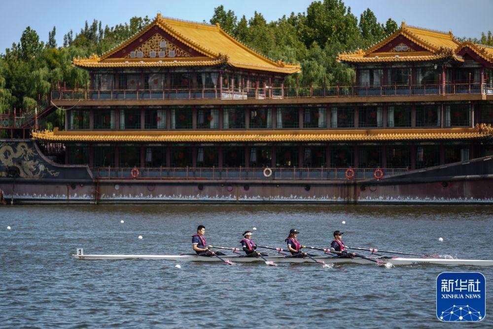 ↑市民在位于北京市通州區(qū)的京杭大運(yùn)河上進(jìn)行賽艇比賽(2022年9月18日攝)。新華社記者 彭子洋 攝