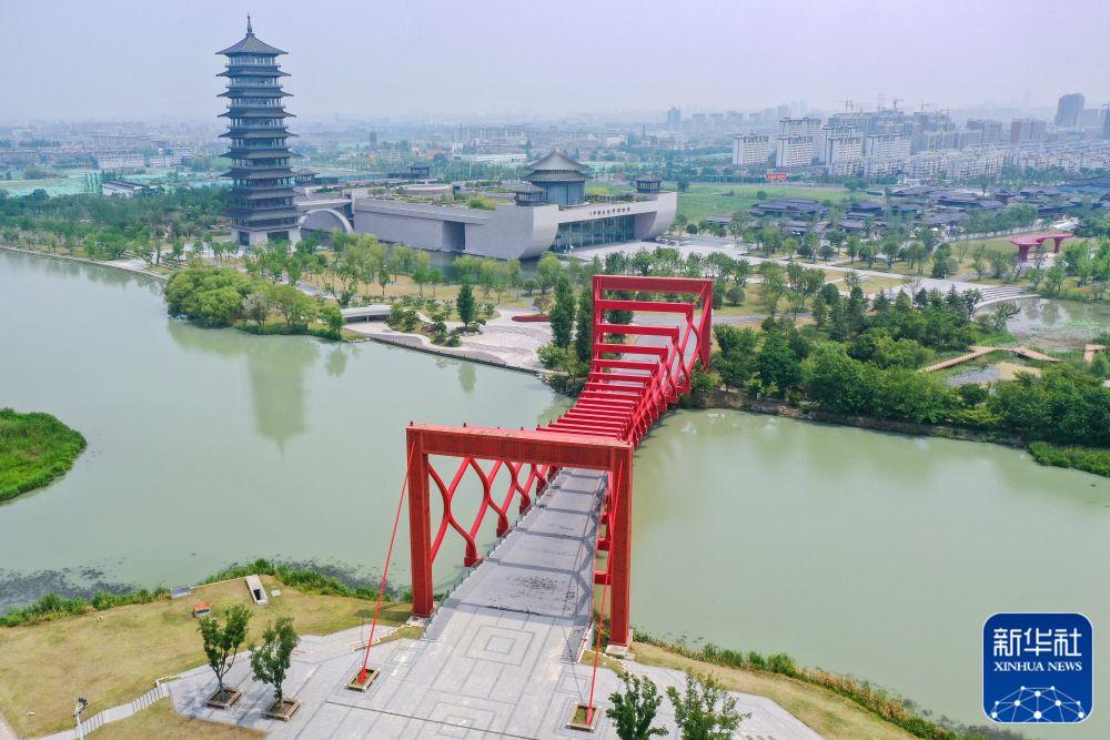 ↑這是位于江蘇省揚(yáng)州市的中國(guó)大運(yùn)河博物館(2022年5月25日攝,無(wú)人機(jī)照片)。新華社記者 李博 攝