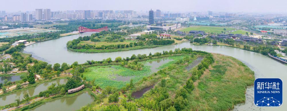 ↑這是位于北京市通州區(qū)的大運(yùn)河森林公園(2020年6月14日攝,無(wú)人機(jī)照片)。新華社發(fā)(常鳴 攝)
