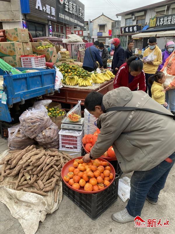 集市上,五顏六色的花卉吸引了許多趕集人群的目光,杜鵑花、三角梅、菊花……有的一盆10元,有的20元,價格親民。在多個水果攤上,柿子、黃元帥和富士蘋果格外惹人,大多數(shù)攤主稱,這些柿子、黃元帥和富士蘋果都是一大早從自家園子里摘的,非常新鮮。