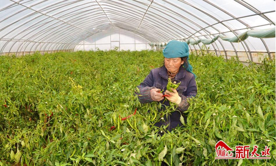 10月12日,記者來(lái)到秦州區(qū)牡丹鎮(zhèn)馬家川設(shè)施蔬菜園區(qū),蔬菜大棚里的辣椒、芹菜、西紅柿、茄子等各類蔬菜長(zhǎng)勢(shì)喜人。辛家溝村村民辛?xí)娬诖笈锢锩χ烧卟恕?/p>