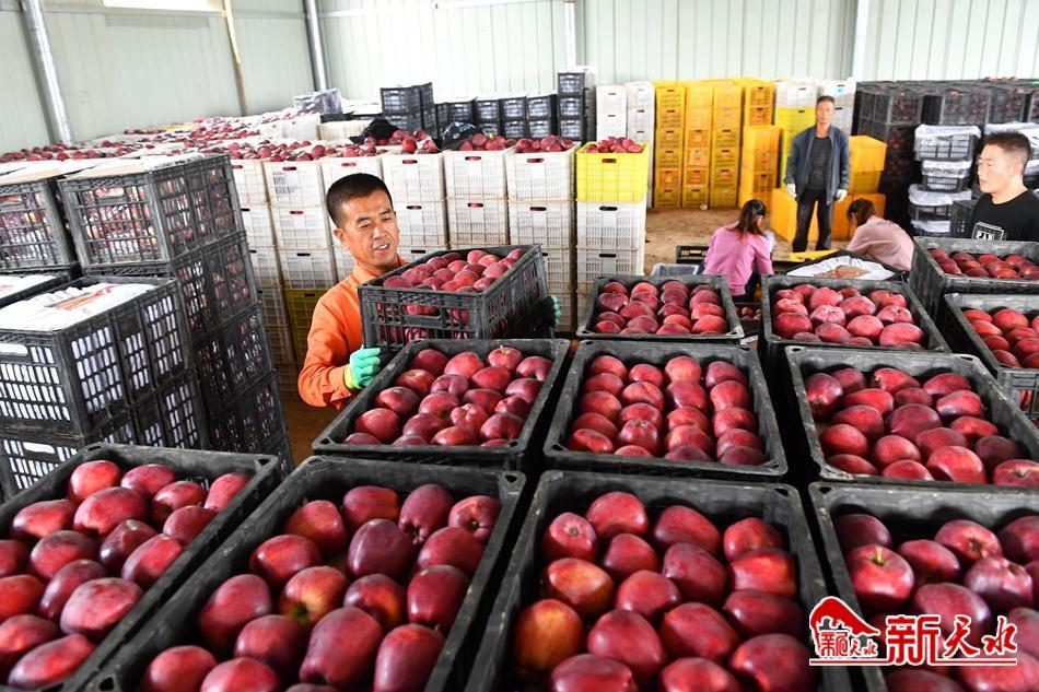 村民們將成熟的花牛蘋果裝箱,準備發(fā)往外地。蘋果產(chǎn)業(yè)實實在在拓寬了大家的增收路。