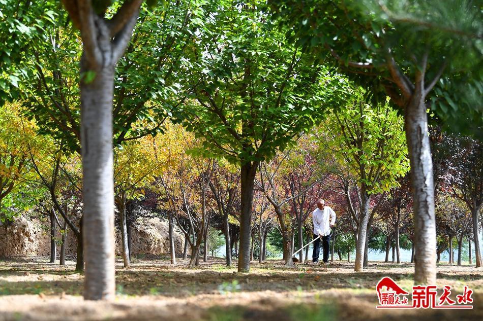 村史館和文體學校的創(chuàng)辦者郭滿福正在生態(tài)公益林勞作。