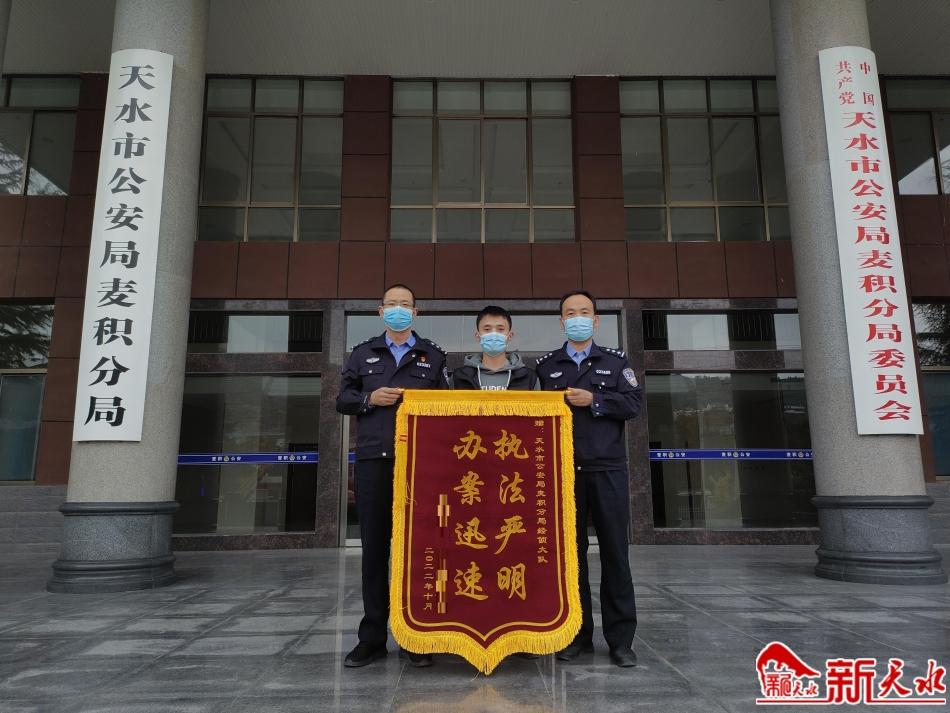 10月25日,該公司法定代表人楊某將一面印有“執(zhí)法嚴(yán)明 辦案迅速”的錦旗送到麥積公安分局經(jīng)偵大隊(duì)民警手中,再次對民警迅速破案,及時幫其挽回經(jīng)濟(jì)損失表示感謝。