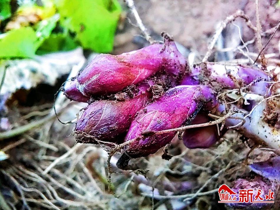 新天水訊 時下,正是生于草冰之中的款冬花含苞吐蕾豐收之際,走進武山縣榆盤鎮(zhèn)蘇家村款冬花示范基地,只見凝霜的土壤之下,紫色的花蕾含苞錦簇、嬌艷欲滴、長勢喜人,務(wù)工群眾正揮鐮持鋤,忙著刨挖、采摘、晾曬。