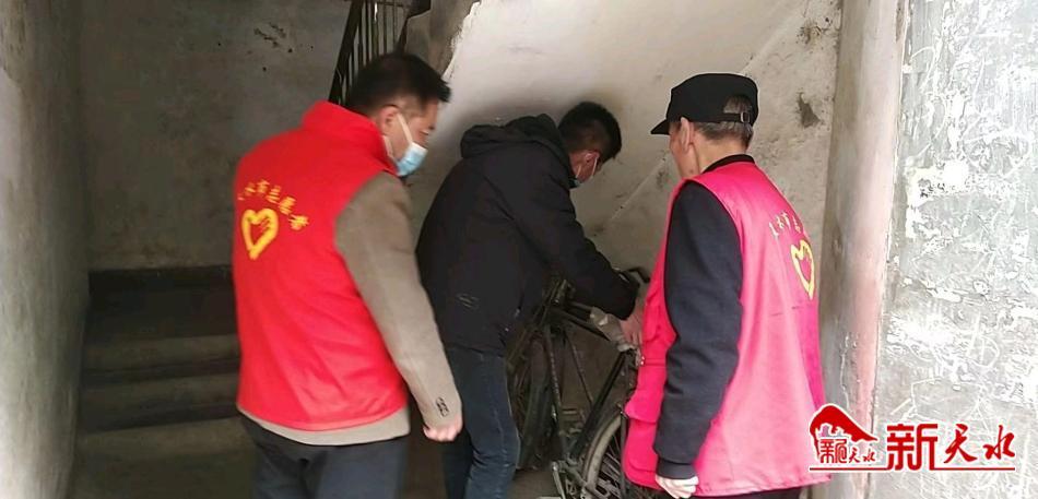 該社區(qū)組織志愿者對小區(qū)樓道張貼的墻面牛皮癬、污損的公益廣告、樓道內亂堆亂放的雜物進行清理清除,對存在飛線充電現(xiàn)象的居民,社區(qū)通過張貼溫馨提示等方式引導居民做到安全用電,杜絕安全事故的發(fā)生。