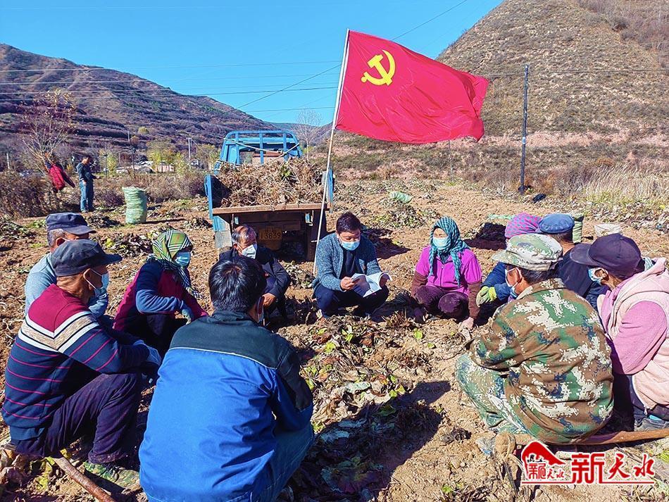 10月31日,在榆盤鎮(zhèn)鐘樓村老黨員李旺平家的庭院里,支部書記和黨員群眾圍坐在一起,李旺平用通俗易懂的語言,為大家領(lǐng)學(xué)黨的二十大精神,鼓勵(lì)鄉(xiāng)親們堅(jiān)定發(fā)展信心,一心一意跟黨走,共行致富路。