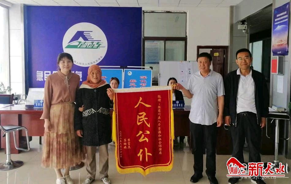 新天水訊 近日,一名群眾將寫著“人民公仆”的錦旗送到張家川縣人社局,以表達(dá)對該局工作人員的感激之情。