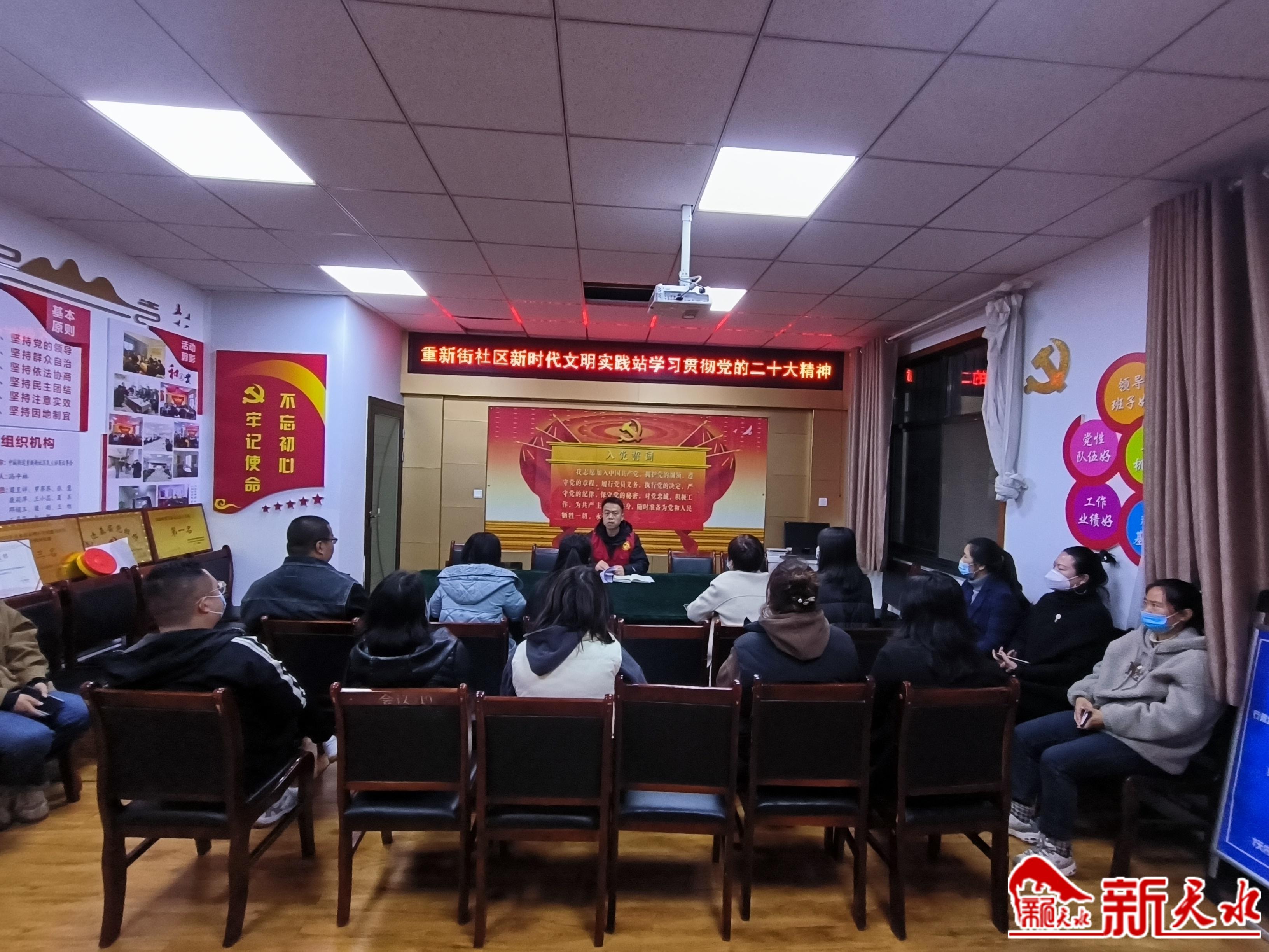 初冬時節(jié),在重新街社區(qū)新時代文明實踐站,一場宣傳黨的二十大精神的“微課堂”正在這里開講。社區(qū)黨委書記梁呈祥的講解,在社區(qū)黨員、網(wǎng)格員、志愿者和居民代表中引發(fā)了共鳴。