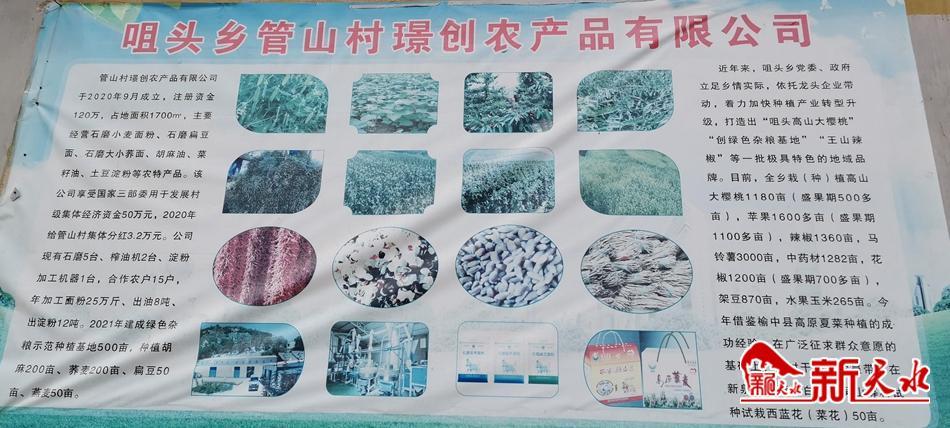 咀頭鄉(xiāng)管山村璟創(chuàng)農(nóng)產(chǎn)品有限公司于2020年9月成立,注冊資金120萬元,占地面積1700平方米,主要經(jīng)營石磨小麥面粉、石磨扁豆面、石磨小蕎面,胡麻油、菜籽油、土豆淀粉等農(nóng)特產(chǎn)品。公司采用“黨支部+公司+農(nóng)戶+基地”模式,2020年給管山村集體分紅3.8萬元,2021年和2022年給管山村集體分紅各4萬元。公司年加工面粉25萬斤、出油8噸、出淀粉12噸。2022年建成綠色雜糧示范種植基地500畝,種植胡麻200畝、蕎麥200畝、扁豆50畝、燕麥50畝。