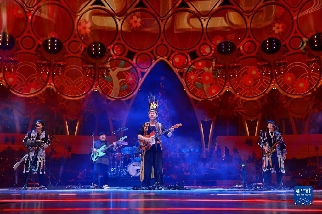 1月14日,在阿聯(lián)酋迪拜世博城,演員在中國館前的舞臺進行文藝表演。新華社發(fā)