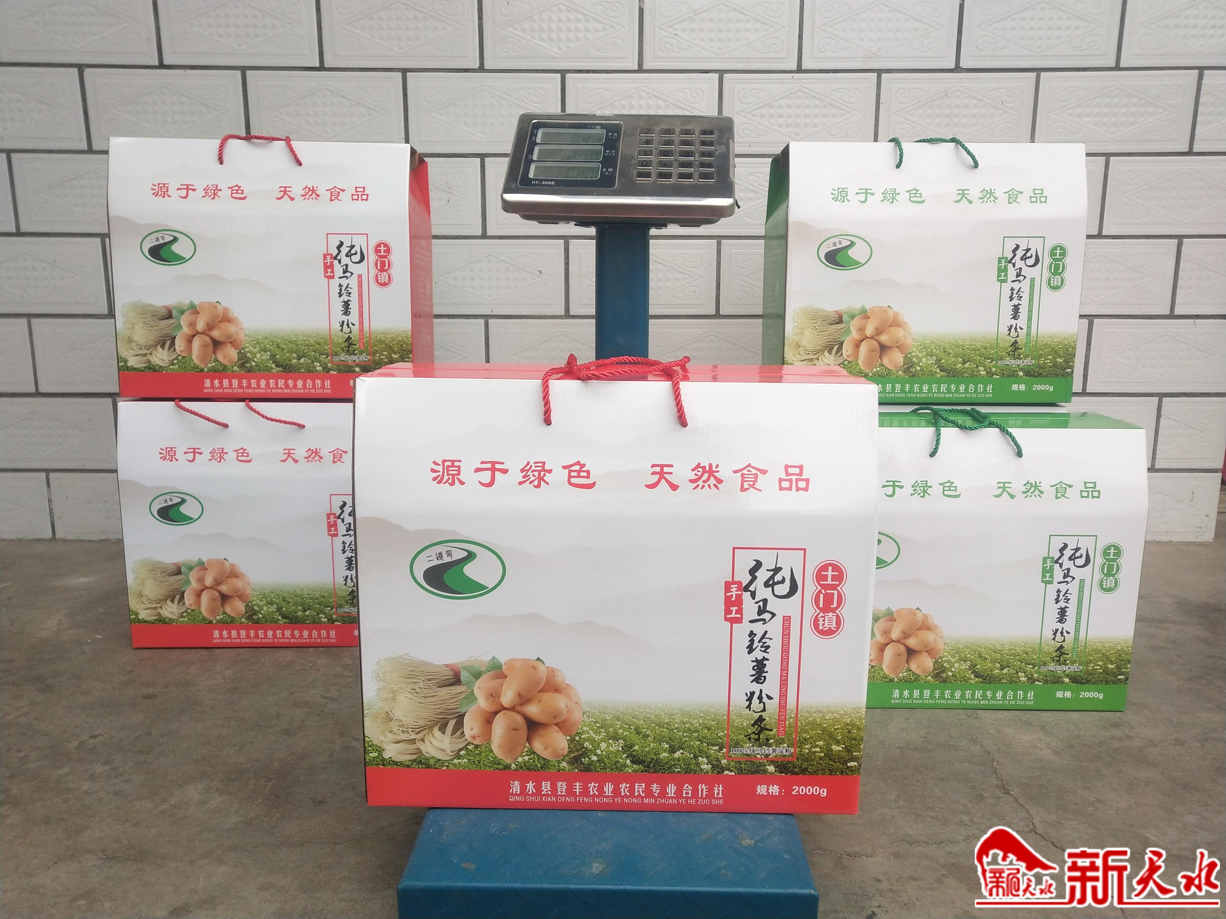 2022年在政府的支持下,王文強(qiáng)創(chuàng)辦了清水縣登豐農(nóng)業(yè)農(nóng)民專業(yè)合作社,帶動(dòng)村民種植了165畝馬鈴薯,總產(chǎn)量達(dá)到46萬(wàn)斤。其中40萬(wàn)斤馬鈴薯與定西藍(lán)天集團(tuán)簽訂訂單以每斤0.75元的價(jià)格收購(gòu),剩余的全部加工成手工粉條,并注冊(cè)了“二道灣”馬鈴薯粉條品牌,銷往縣內(nèi)外。