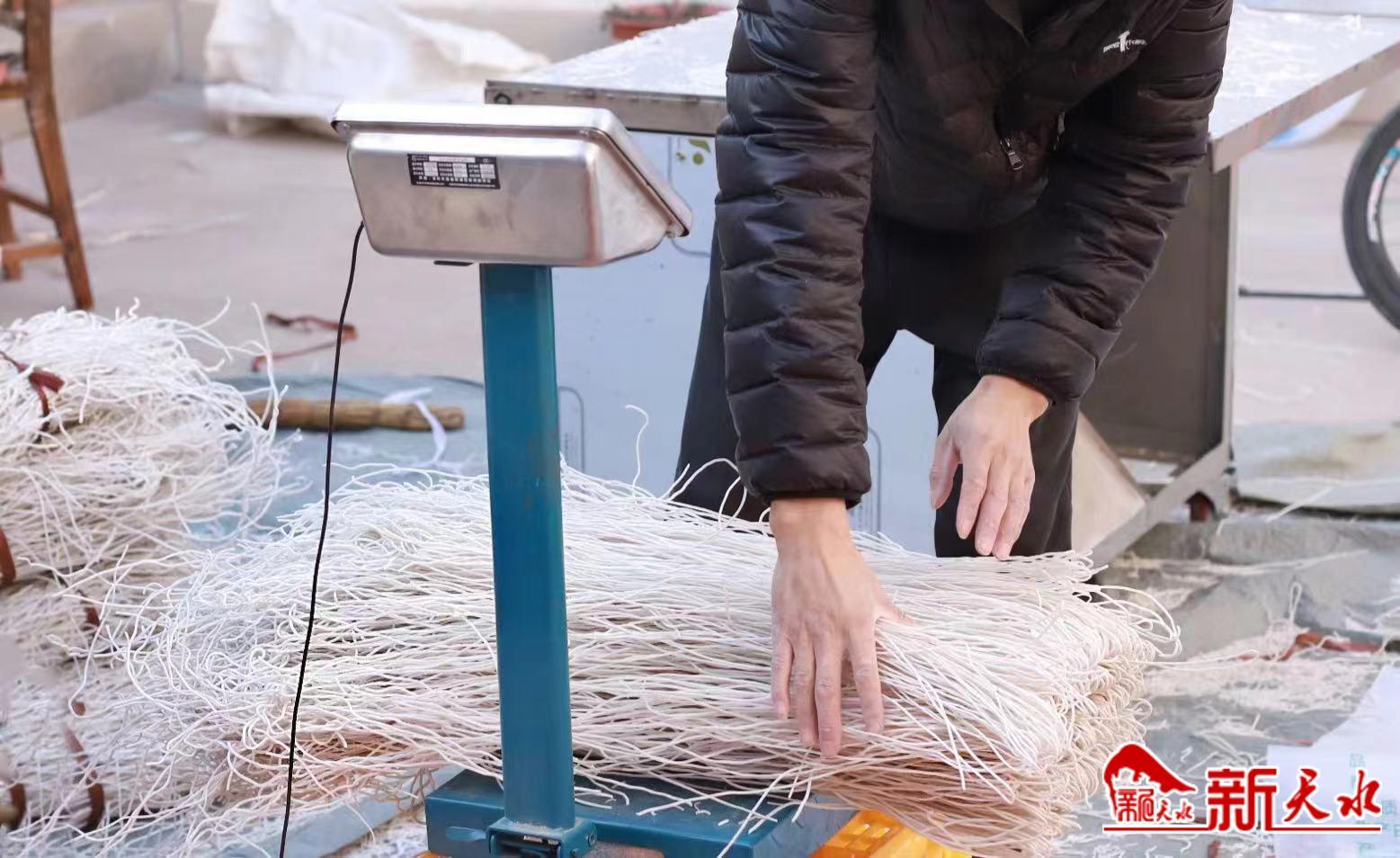 1月16日,云山村的登豐農(nóng)業(yè)農(nóng)民專業(yè)合作社里熱鬧非凡:村民們將晾曬好的手工粉條切粉、稱斤、扎捆、裝盒……分工有序,忙而不亂。