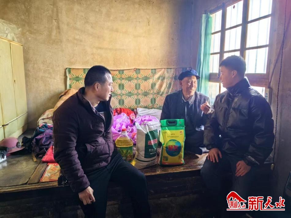 “爺爺你好!要過年了,我們過來看望您,給您拜個早年,祝您健康長壽!”1月20日,麥積區(qū)伯陽鎮(zhèn)馬硯村的李大爺家里走進(jìn)兩位年輕人,他們手提米面油等慰問品,一進(jìn)門就給老人送上美好祝福,老人高興得拉著年輕人的手連聲道好。