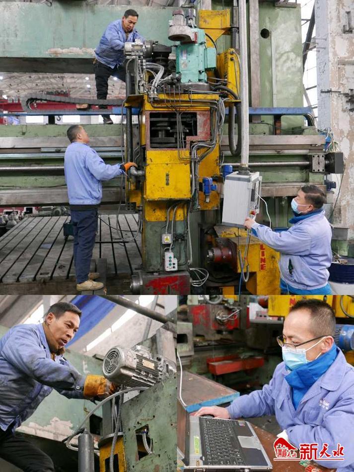 在機械制造公司大件工段,維修電工王師傅和安師傅正在仔細檢查著淬火機的各條線路。安師傅說,淬火機年前就“罷工”了,導致床身的生產(chǎn)進度嚴重滯后。為了讓設備盡早恢復作業(yè),他們天天干到晚上一兩點,從放假到現(xiàn)在,休息了不到兩天時間。再看其他工段磨床、刨床、銑床、車床等機臺的師傅們,也是認真研究圖紙,細心操作機器,全力保障產(chǎn)品加工質(zhì)量,為“搶進度、保訂單”而馬不停蹄忙碌著。