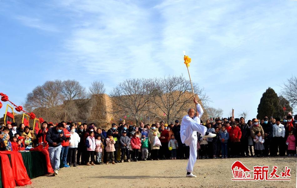 新天水訊【記者張文都】1月28日,農(nóng)歷正月初七,由武山縣文旅局、武山縣城關(guān)鎮(zhèn)政府、武山縣融媒體中心主辦的“三堡九灣”民俗文化展演活動(dòng)在寧遠(yuǎn)古堡文化產(chǎn)業(yè)園黑虎堡拉開(kāi)帷幕,來(lái)自十里八鄉(xiāng)的群眾及游人登上有著“三堡九灣”美譽(yù)的黑虎咀山頂,興高彩烈地觀看多姿多彩的非遺文化、感受趣味橫生的民間藝術(shù)精粹,一系列精彩紛呈的展演節(jié)目為群眾帶來(lái)一場(chǎng)盛大的民俗文化大餐。