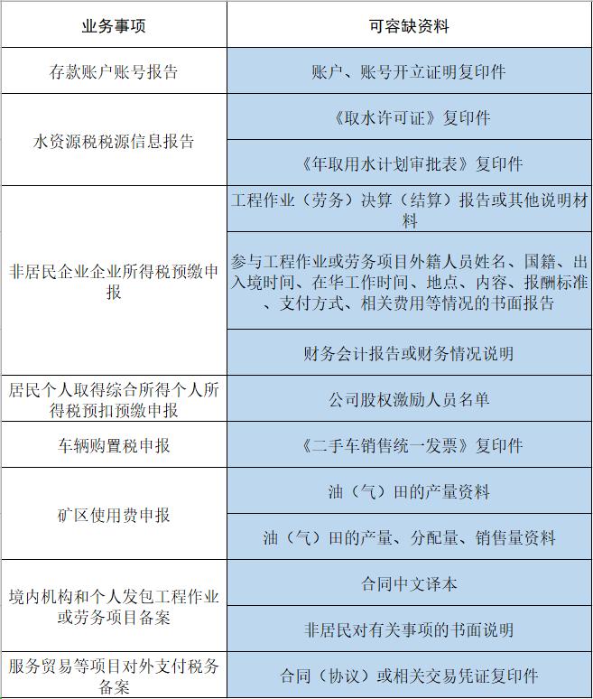 容缺辦理涉稅費(fèi)事項(xiàng)及容缺資料清單