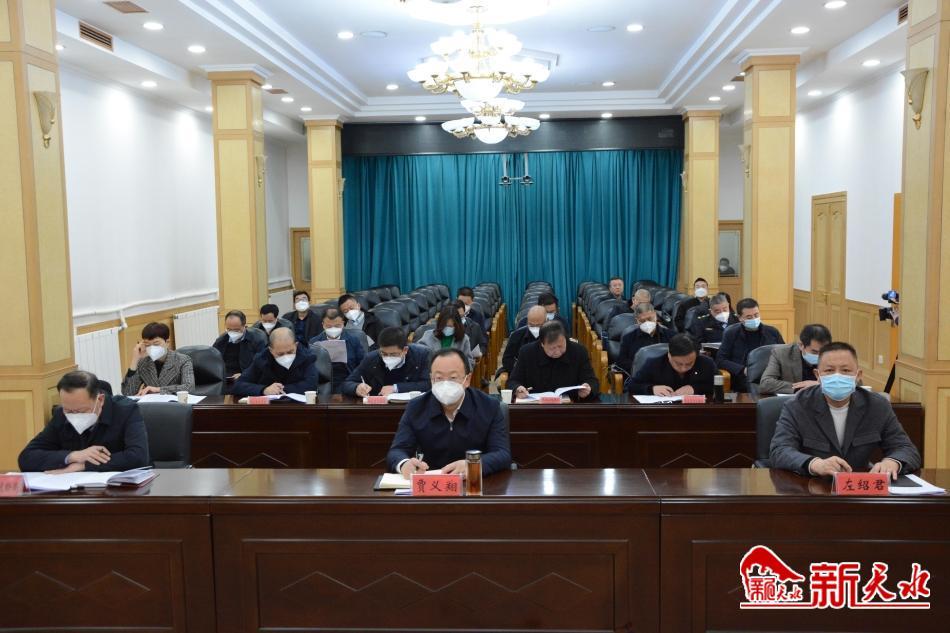 市委常委、常務(wù)副市長(zhǎng)賈義翔在天水分會(huì)場(chǎng)收聽收看電視電話會(huì)。