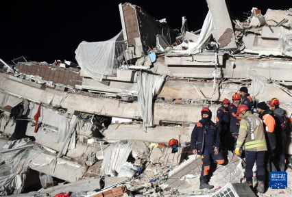 2月8日,救援人員在土耳其哈塔伊的一處地震廢墟搜救。新華社記者沙達提攝