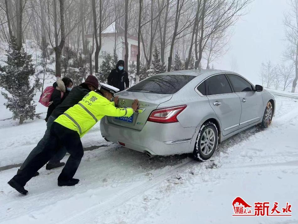 風(fēng)雪中,我市公安交警全員上崗下沉到一線,疏導(dǎo)交通、加大巡邏管控、隱患排查、勸返不具備通行的車輛,鏟除積雪、撒鹽防滑,幫助受困駕駛員安裝防滑鏈、將打滑車輛推到安全地帶,守護(hù)孩子們的上學(xué)路、攙扶行動不便的行人……演繹了一幕幕暖心的場面,成了公路上一道亮麗的風(fēng)景線。