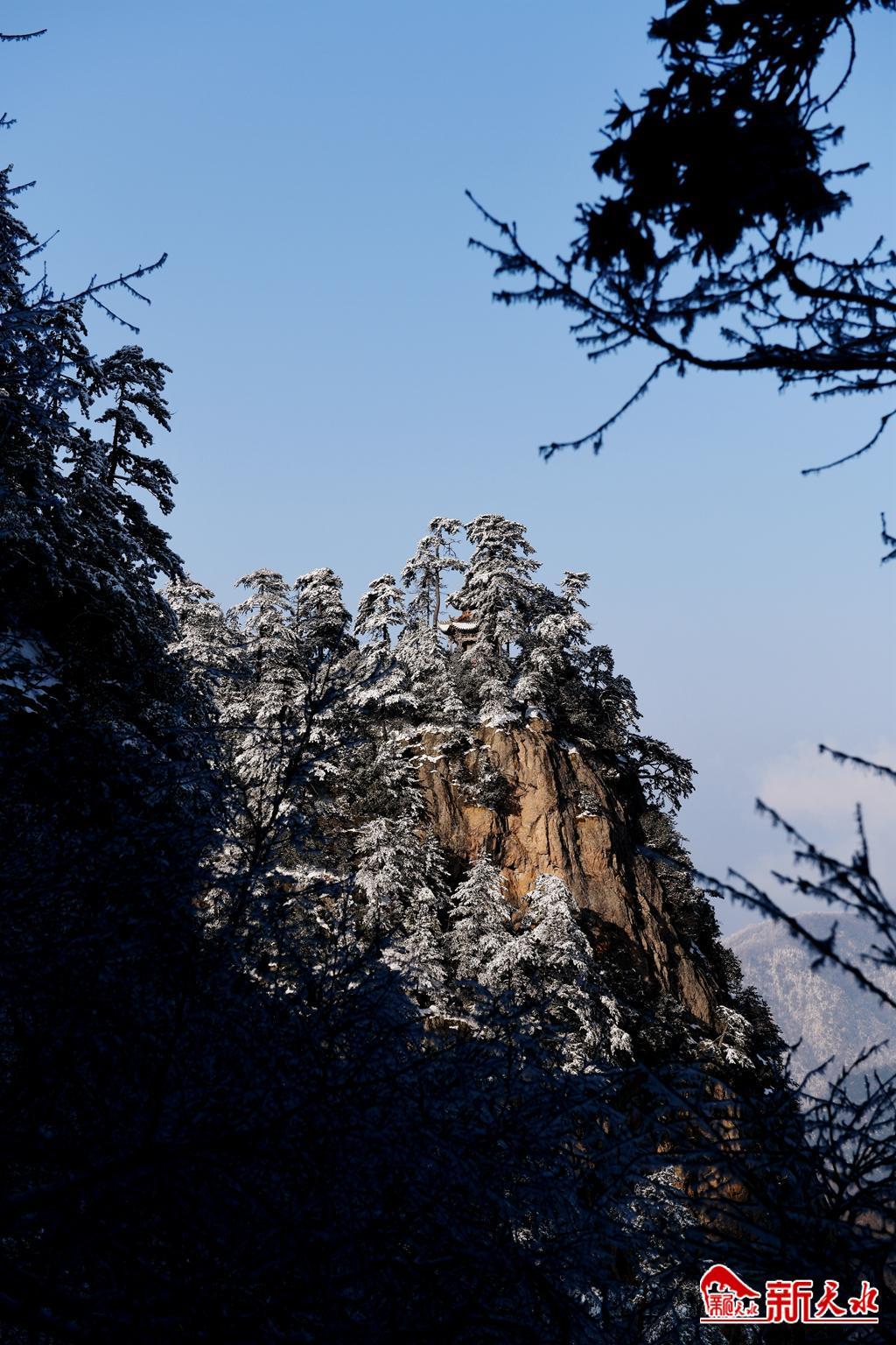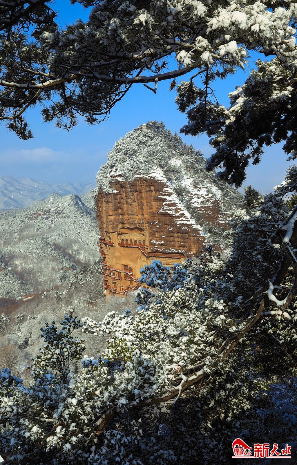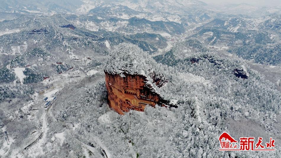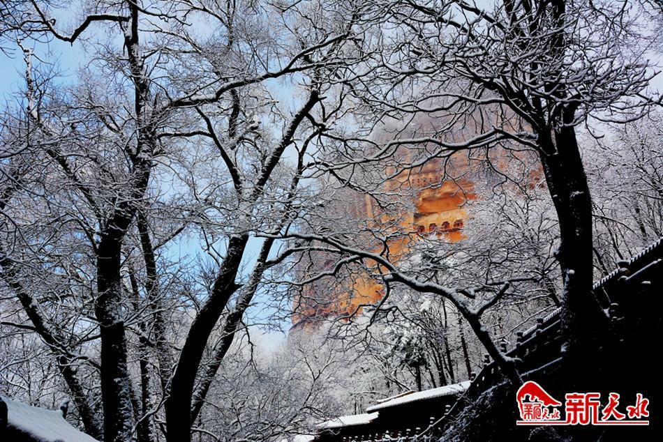 天水最美的雪,落在了麥積崖,仙人湖,也落在了高聳入云的石門山。