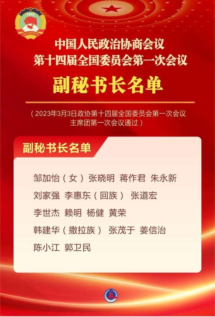 中國(guó)人民政治協(xié)商會(huì)議第十四屆全國(guó)委員會(huì)第一次會(huì)議副秘書長(zhǎng)名單