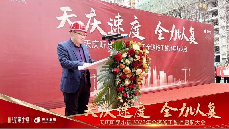 竇愈強先生在致辭中指出,2023年作為天慶聽泉小鎮(zhèn)品質(zhì)兌現(xiàn)年度,項目施工進入到新的階段,計劃4月實體樣板間對外開放、6月實景園林開放、年終整盤實現(xiàn)搶工期、保品質(zhì)、防風險,達到預(yù)交付建設(shè)標準。竇總要求全體員工、各施工單位、監(jiān)理單位繼續(xù)堅守天慶匠心打磨產(chǎn)品,以更強的執(zhí)行力去推動施工建設(shè)等,全力以赴實現(xiàn)天慶聽泉小鎮(zhèn)項目的美好兌現(xiàn)。
