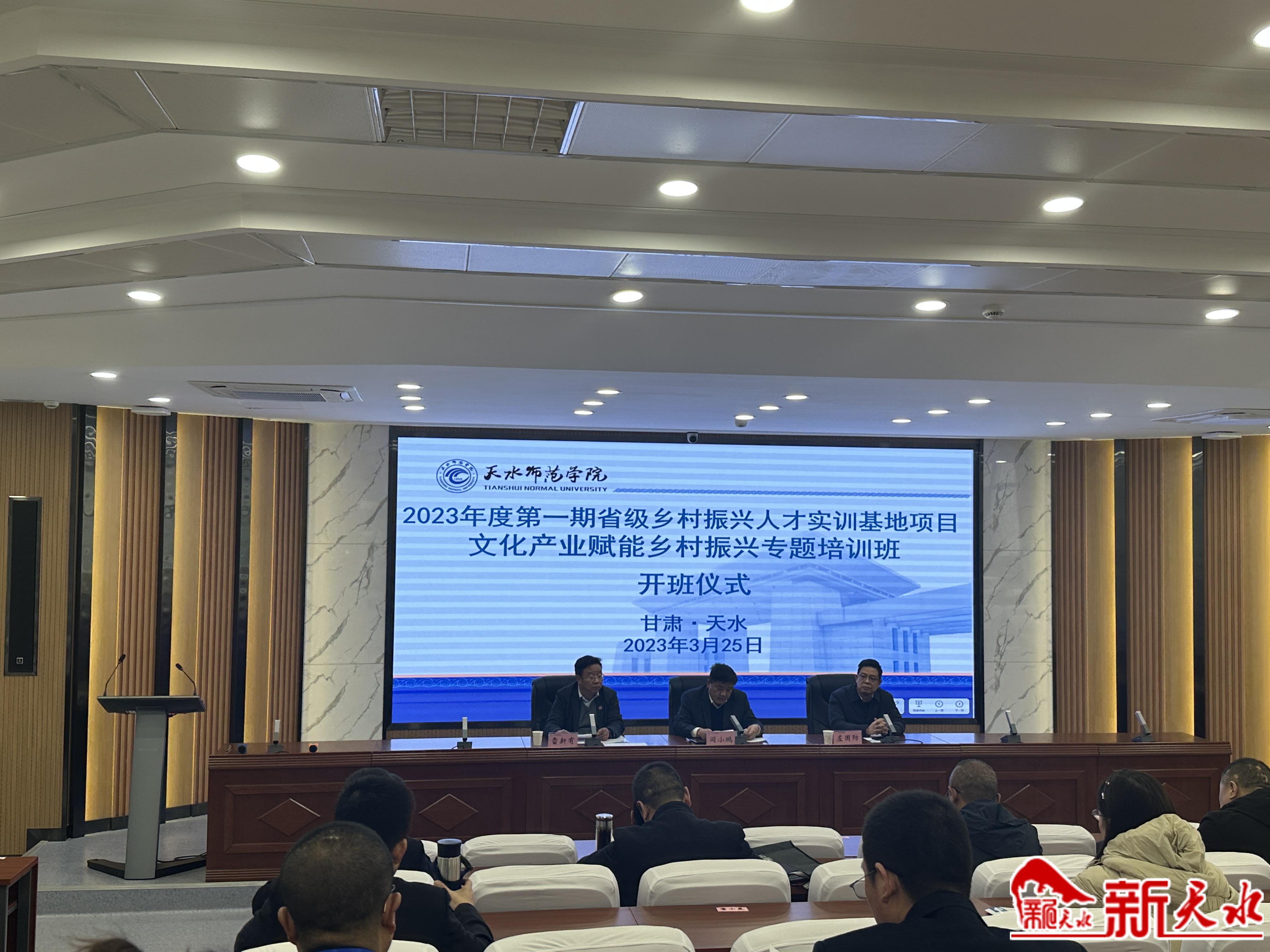 新天水訊【記者辛聞】3月25日上午,省級(jí)鄉(xiāng)村振興人才實(shí)訓(xùn)基地項(xiàng)目——文化產(chǎn)業(yè)賦能鄉(xiāng)村振興專題培訓(xùn)班開(kāi)班儀式在天水師范學(xué)院舉行。天水、隴南兩市宣傳和社科聯(lián)部門(mén)負(fù)責(zé)人,省、市社科基地負(fù)責(zé)人,優(yōu)秀文藝工作者,文旅企業(yè)及縣區(qū)旅游示范鄉(xiāng)鎮(zhèn)負(fù)責(zé)人共計(jì)90多人參加培訓(xùn)。