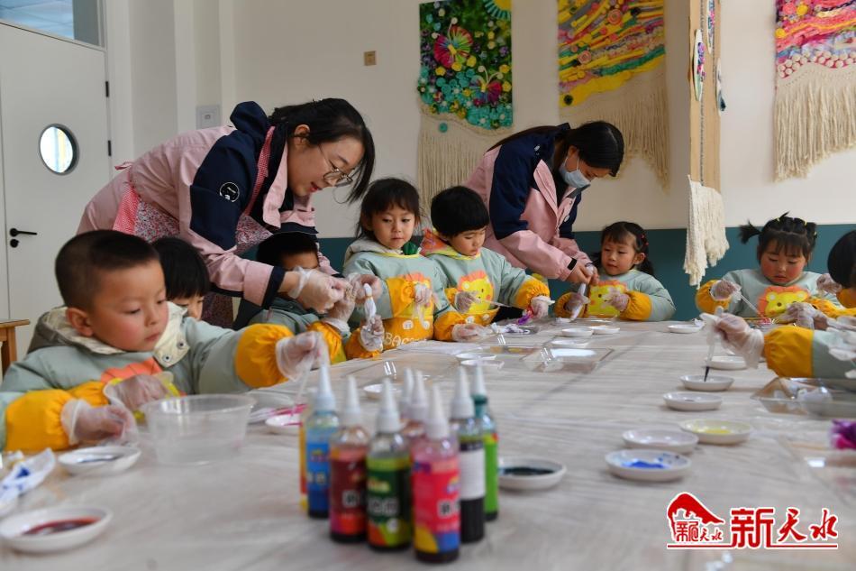 與西華小學(xué)緊鄰的是清水縣第六幼兒園。記者來(lái)到該園采訪時(shí),幼兒園的藝術(shù)創(chuàng)想空間教室里,教師劉亙芳正帶著十幾個(gè)小朋友體驗(yàn)扎染藝術(shù),孩子們認(rèn)真地用小手染出了一個(gè)多彩的世界?!拔覀冇變簣@一共有七大功能室,每周四下午,都會(huì)把孩子們進(jìn)行分組,讓他們?nèi)ッ總€(gè)功能室活動(dòng)?!眲兎冀榻B說(shuō),新建成的清水縣第六幼兒園設(shè)施齊全,科學(xué)探索、創(chuàng)意美術(shù)、生活創(chuàng)想等七大功能室為孩子們提供了創(chuàng)造、想象和表現(xiàn)的空間,極大地豐富了孩子們?cè)谟變簣@的學(xué)習(xí)和生活。