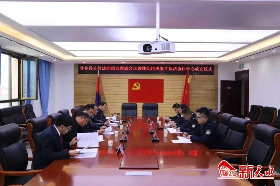 新天水訊   3月30日,甘谷縣公檢法煙四部門涉煙違法案件執(zhí)法協(xié)作中心在甘谷縣公安局掛牌成立,四部門召開首次聯(lián)席會議。