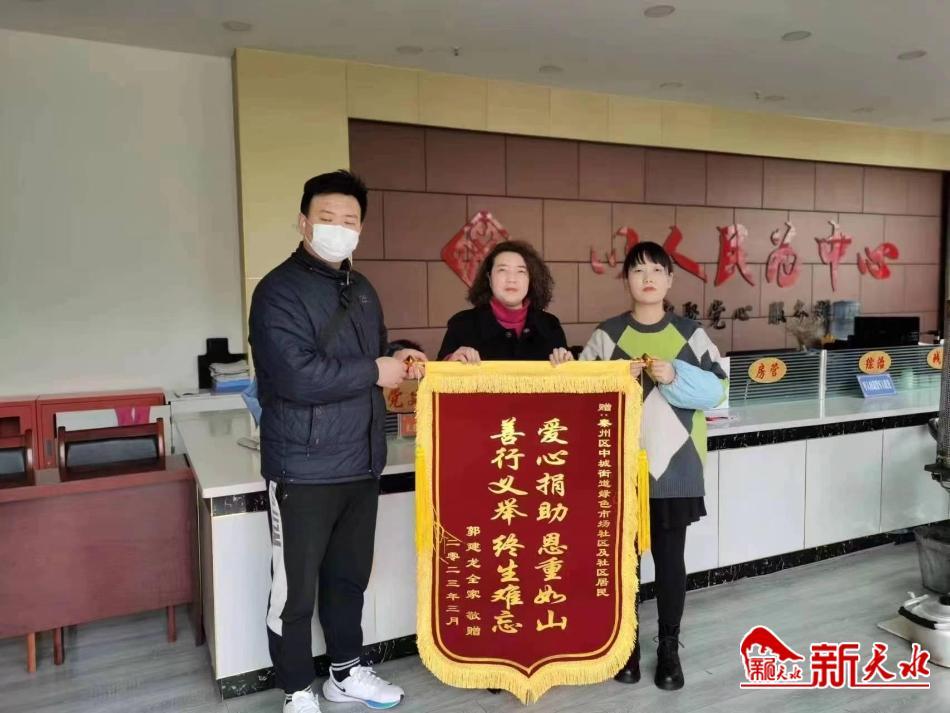 “謝謝社區(qū)對我們一家的幫助?!?span style="text-indent: 2em;">3月22日,在秦州區(qū)中城街道綠色市場社區(qū)居民郭建龍家屬懷著感激之情,將一面印著“愛心捐贈恩重如山,善行義舉終身難忘”的錦旗送到社區(qū)。以此感謝社區(qū)工作人員及居民在郭建龍重病期間給予他及家人的關(guān)心與照顧。