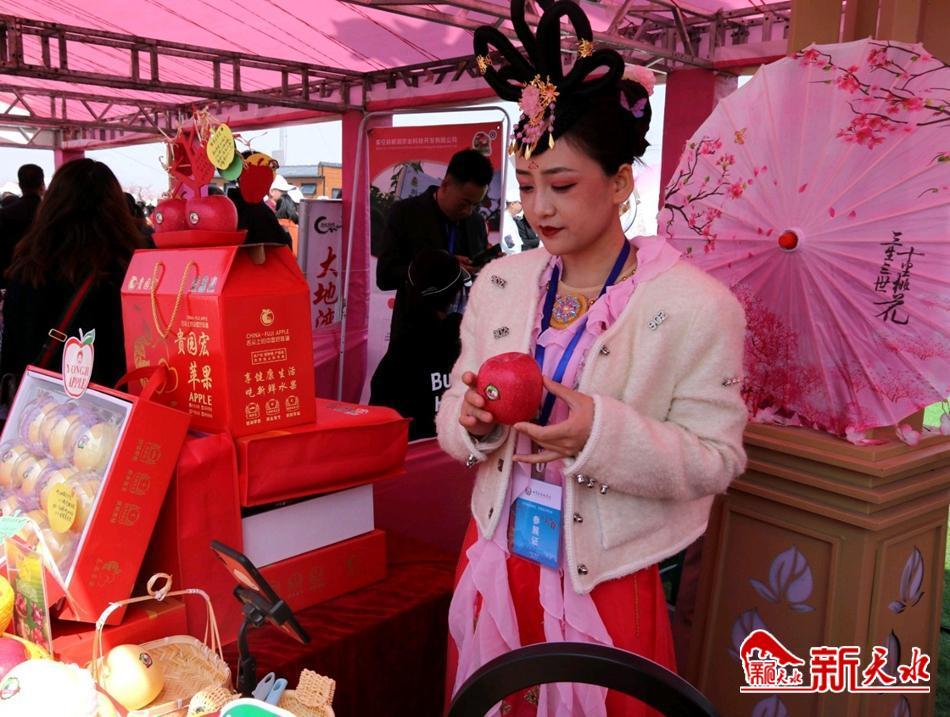 秦安縣貴園宏果業(yè)有限公司總經(jīng)理董曉梅說:“我們帶來的展銷品有水晶紅富士、黃香蕉蘋果,僅僅半個小時,就銷售出去了二十多箱,接下來我們會把更好的展品展示給大家?!?/p>