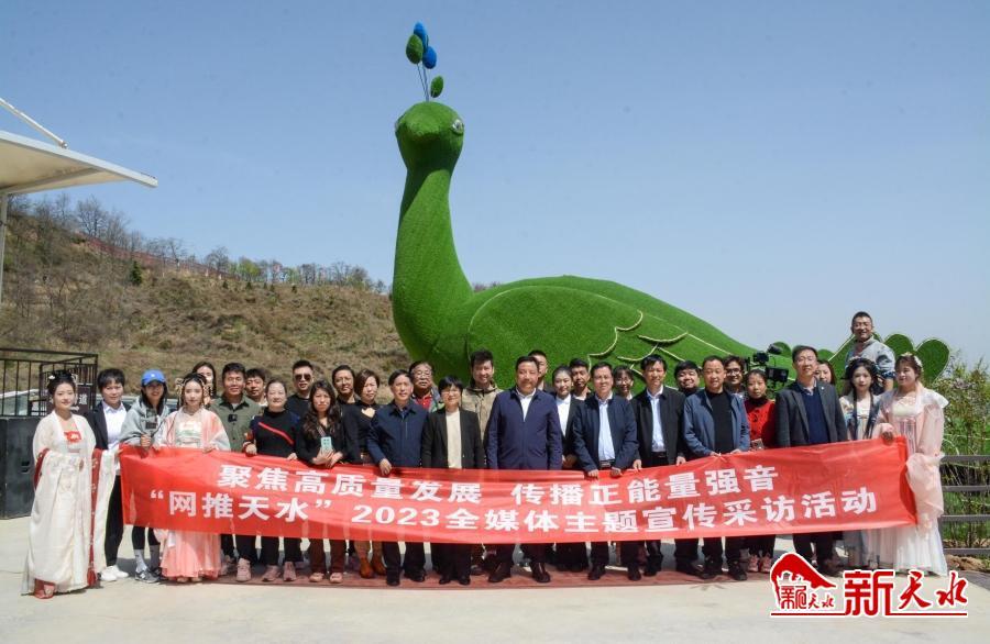 新天水訊【記者馬凱】4月15日,由市委宣傳部、市委網(wǎng)信辦主辦的“聚焦高質(zhì)量發(fā)展,傳播正能量強(qiáng)音——‘網(wǎng)推天水’2023全媒體主題宣傳采訪活動(dòng)暨短視頻大賽”在花舞南山啟動(dòng)。全市各界30余家網(wǎng)絡(luò)媒體從業(yè)者以及網(wǎng)絡(luò)大V名人共計(jì)50多人參加啟動(dòng)儀式。