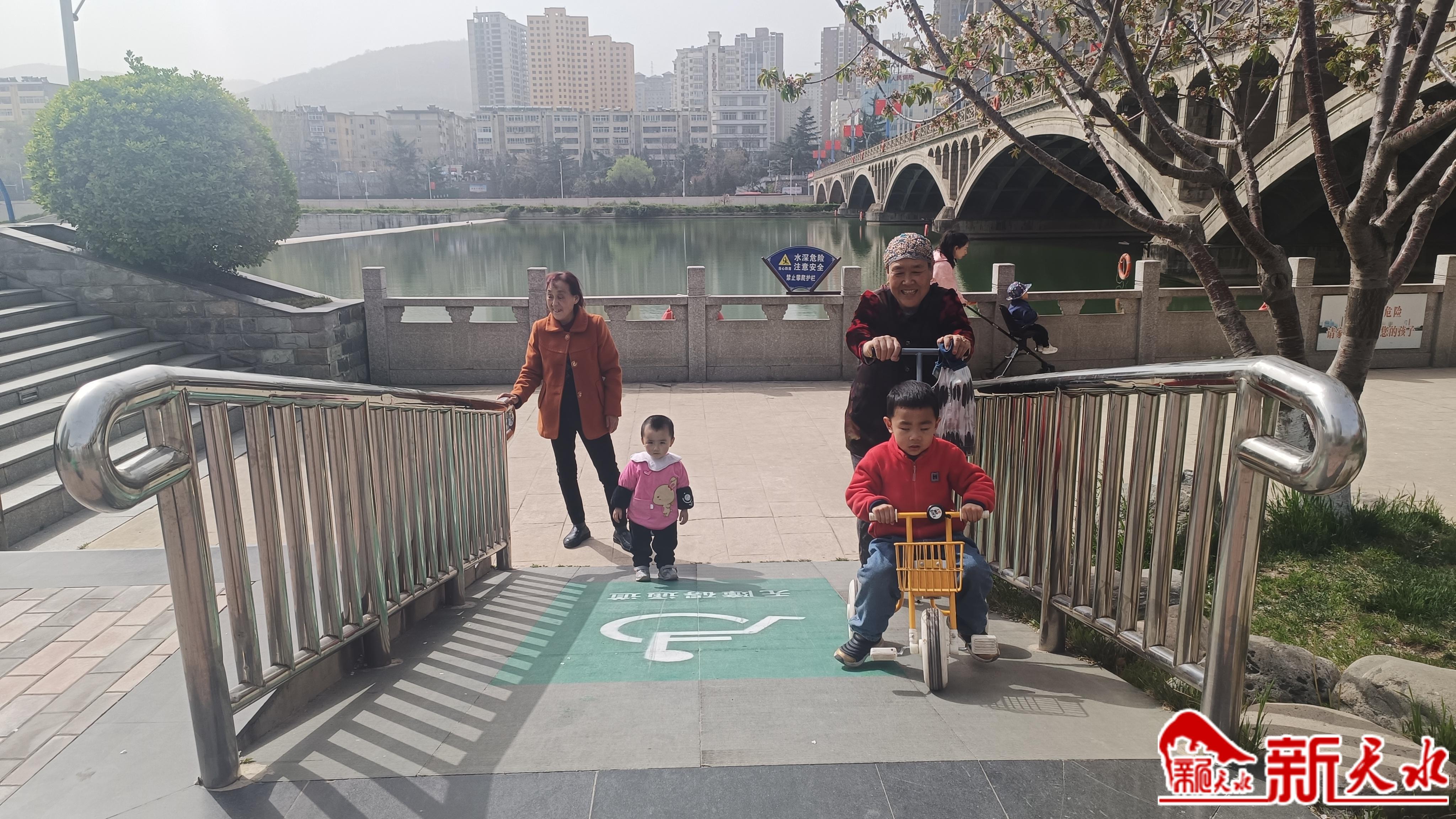 “現(xiàn)在非常方便,以前帶孩子出來(lái)玩遇到臺(tái)階、道牙時(shí),只能將嬰兒車(chē)抬起來(lái)才能通過(guò),現(xiàn)在到處都有這樣的斜坡,我一個(gè)人就可以推著車(chē)子帶娃來(lái)戶外游玩,方便又輕松?!?月18日,在秦州區(qū)南大橋附近的藉河風(fēng)情線上,市民馬女士帶著孩子在湖邊散完步后,通過(guò)一處標(biāo)有綠色“無(wú)障礙通道”標(biāo)識(shí)的斜坡,很輕松就從河堤邊走了上來(lái)。