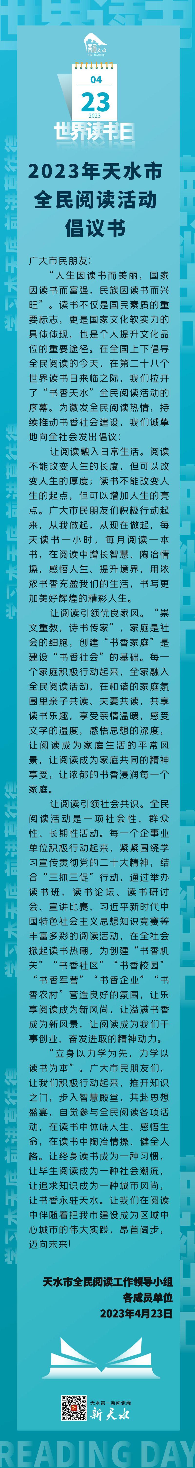 微海報(bào) | 2023年天水市全民閱讀活動(dòng)倡議書