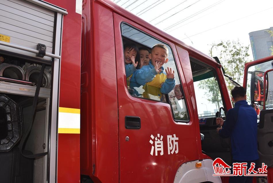 在車(chē)庫(kù)前,一輛輛紅色消防車(chē)整齊排列,消防宣傳員依次為小朋友們介紹每輛車(chē)的名稱(chēng)和功能用途,還邀請(qǐng)小朋友上車(chē)乘坐,“零距離”體驗(yàn)一把,小朋友們個(gè)個(gè)興高采烈坐上消防車(chē)并和消防車(chē)合影留念。
