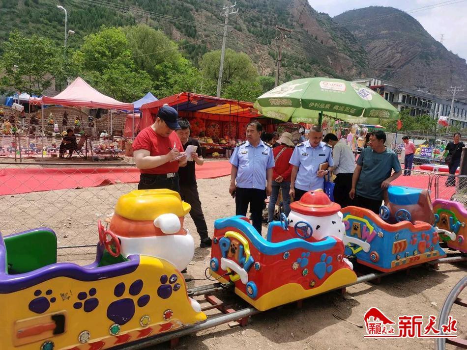 新天水訊 5月20日,甘谷縣應急管理局聯(lián)合縣市場監(jiān)管局,對大像山文化旅游節(jié)活動范圍內(nèi)的游樂設施進行全方位會診式專項執(zhí)法檢查。
