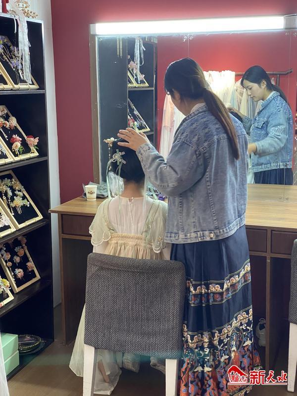 5月29日下午,在天水古城的一家攝影門(mén)店,一位穿著旗袍的小朋友在室外拍攝結(jié)束后,隨著造型師回到了化妝間重新梳妝,隨后小朋友換上了一身十分典雅的宋朝服飾??吹胶⒆用χ臄z,家長(zhǎng)對(duì)記者說(shuō):“往年‘六一’到來(lái),除了給孩子買(mǎi)好看的衣服外,就是領(lǐng)著孩子大吃一頓,今年在新聞上看到玉泉觀舉辦的‘花朝節(jié)’,女孩們身著古裝,個(gè)個(gè)美麗動(dòng)人,于是想著讓孩子也拍攝一組古裝,沒(méi)想到‘六一’期間攝影門(mén)店也有針對(duì)小朋友們的優(yōu)惠活動(dòng)?!?/p>