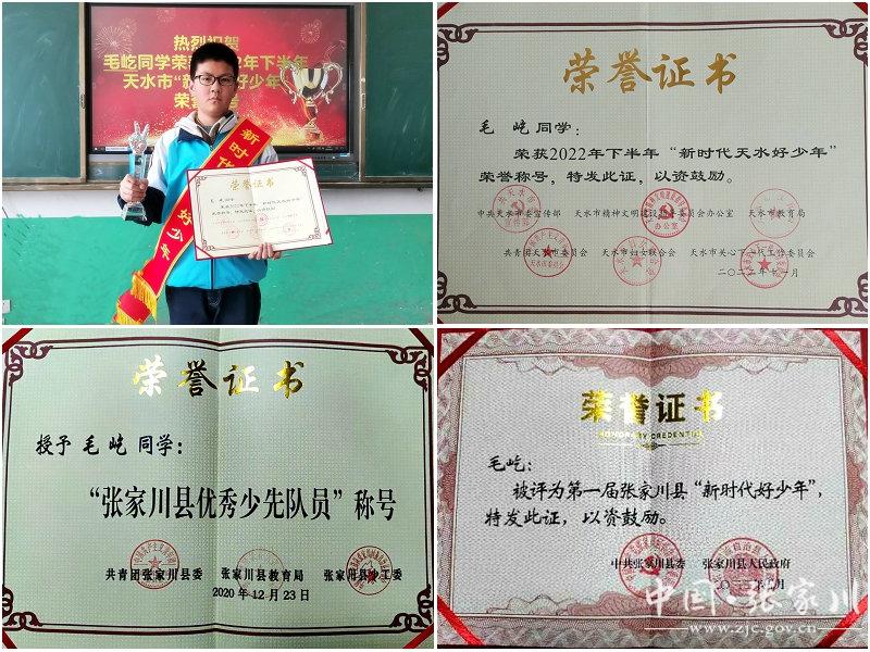 新天水訊 據(jù)張家川縣融媒體中心消息 一個(gè)普普通通的陽光男孩,就讀于張家川縣木河中學(xué)七年級(jí)(1)班,是一名勤學(xué)樂思、孝親敬老、愛好廣泛、熱愛集體的優(yōu)秀中學(xué)生,在他身上沒有轟轟烈烈的感人故事,但他以最普通的生活事跡詮釋著人間的真善美,以最平凡的行動(dòng)踐行著中華民族的傳統(tǒng)美德,先后榮獲新時(shí)代天水好少年、張家川縣優(yōu)秀少先隊(duì)員和張家川縣第一屆新時(shí)代好少年、校級(jí)三好學(xué)生等榮譽(yù)稱號(hào)。