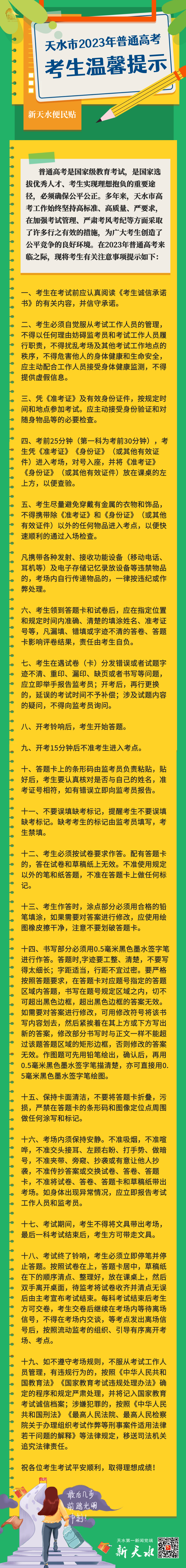 【2023年高考】便民貼 | 天水市2023年普通高考考生溫馨提示