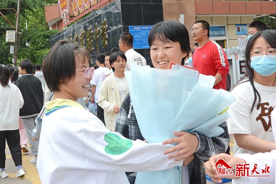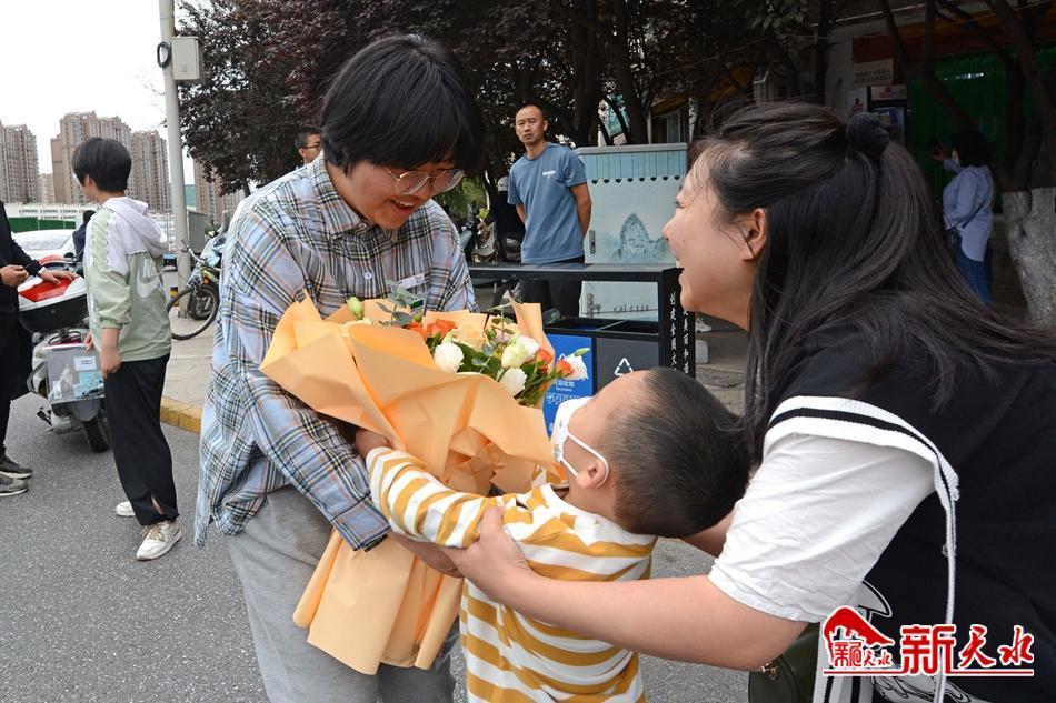 在天水市逸夫中學(xué)考點(diǎn),考生有序通過(guò)安檢進(jìn)入考場(chǎng)。家長(zhǎng)們?cè)谕饽克秃⒆幼哌M(jìn)考點(diǎn)。一位父親身穿“旗開(kāi)得勝”字樣的圓領(lǐng)衫,祝愿女兒考試順利;一位母親與女兒擊掌揮手,加油鼓勁;考生向家長(zhǎng)豎起“勝利”手勢(shì),胸有成竹地走進(jìn)考場(chǎng);公安干警維持考點(diǎn)外秩序,幫助行動(dòng)不便的考生進(jìn)入考場(chǎng)。第一科考試結(jié)束,家長(zhǎng)們翹首張望孩子走出考點(diǎn),弟弟妹妹手捧鮮花迎接哥哥和姐姐……