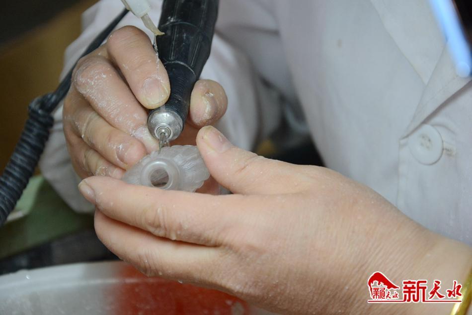 “那段時(shí)間里,每當(dāng)有空閑時(shí)間,我便琢磨游客說過的這句話。我嘗試著設(shè)計(jì)制作了一些茶桌上的小把玩。沒想到,最后這些都成功了,而且我獨(dú)創(chuàng)的工藝我還成功申請(qǐng)了國(guó)家專利。這樣,既繼承創(chuàng)新了天水玉雕傳統(tǒng)技法,又極大地提升了玉雕工藝水平?!被貞浧鹉嵌螘r(shí)光,尹麗珺向記者如是娓娓道來。