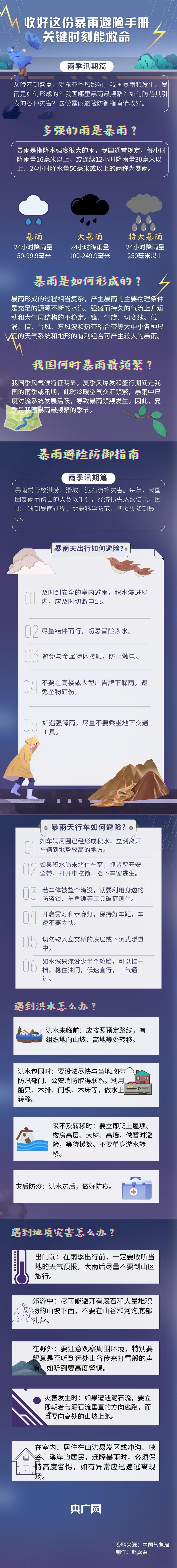 央廣網(wǎng)長春7月5日消息(記者郭東隅)正值汛期,我國多地遭遇今年以來最強降雨過程,出現(xiàn)暴雨、大暴雨甚至特大暴雨。那么,暴雨究竟是如何形成的?如何防范其引發(fā)的各種災害?這份暴雨避險防御指南請收好,關鍵時刻能救命。