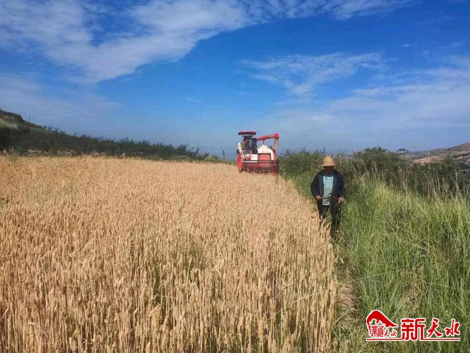 新天水訊 麥浪滾滾,機(jī)聲隆隆。6月下旬,秦安縣30多萬畝冬小麥由淺山區(qū)至高山區(qū),漸次成熟,畦壟金黃、熠熠生輝,一派豐收的景象。
