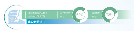 當(dāng)前,寧波舟山港正扎實(shí)開展學(xué)習(xí)貫徹習(xí)近平新時(shí)代中國(guó)特色社會(huì)主義思想主題教育,努力開創(chuàng)港口發(fā)展新局面,推進(jìn)智慧港口建設(shè),實(shí)現(xiàn)綠色低碳轉(zhuǎn)型。在寧波舟山港梅山港區(qū)碼頭,智能無人集裝箱卡車自動(dòng)穿行,遠(yuǎn)控自動(dòng)化龍門吊協(xié)助作業(yè)。碼頭另一端,橋吊司機(jī)通過智能操控平臺(tái)實(shí)時(shí)遠(yuǎn)程監(jiān)控操作,加速超級(jí)大港高效運(yùn)轉(zhuǎn)。在節(jié)能減排方面,碼頭采用光伏技術(shù)對(duì)部分設(shè)備供能。同時(shí),碼頭泊位的岸電覆蓋率也達(dá)到了100%,為在港期間的船只提供清潔能源。
