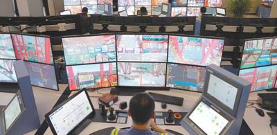 橋吊司機(jī)通過智能操控平臺(tái)遠(yuǎn)程作業(yè)。本報(bào)記者 李 舸攝