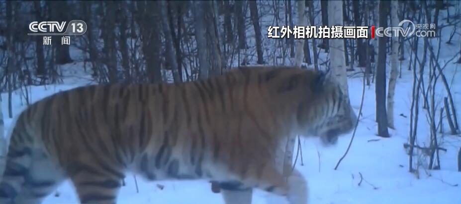 央視網(wǎng)消息:近日,工作人員在東北紅豆杉國家級自然保護(hù)區(qū)核心區(qū)、東北虎豹國家公園穆棱園區(qū)內(nèi)布設(shè)的野外紅外線相機(jī)中,再次發(fā)現(xiàn)了野生東北虎“完達(dá)山一號”今年4月份在該區(qū)域活動的清晰影像。